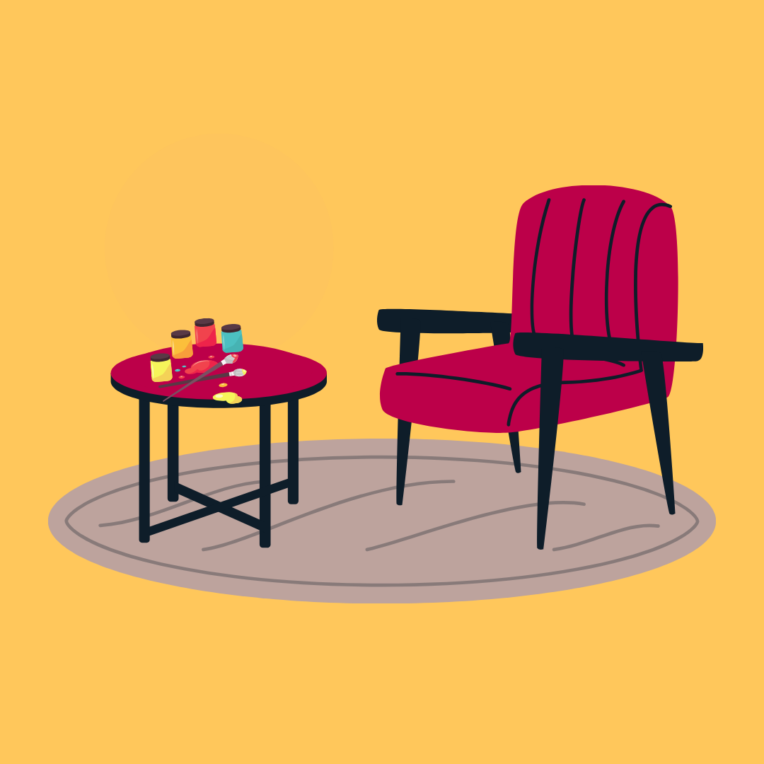 Tijdens het feest nemen wij alles mee: stoel, tafel en materialen.